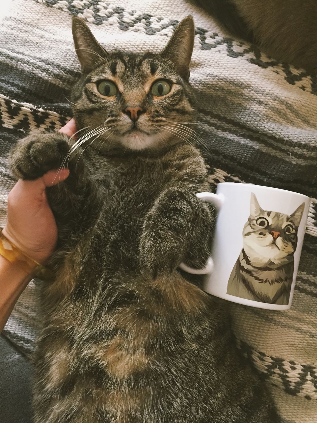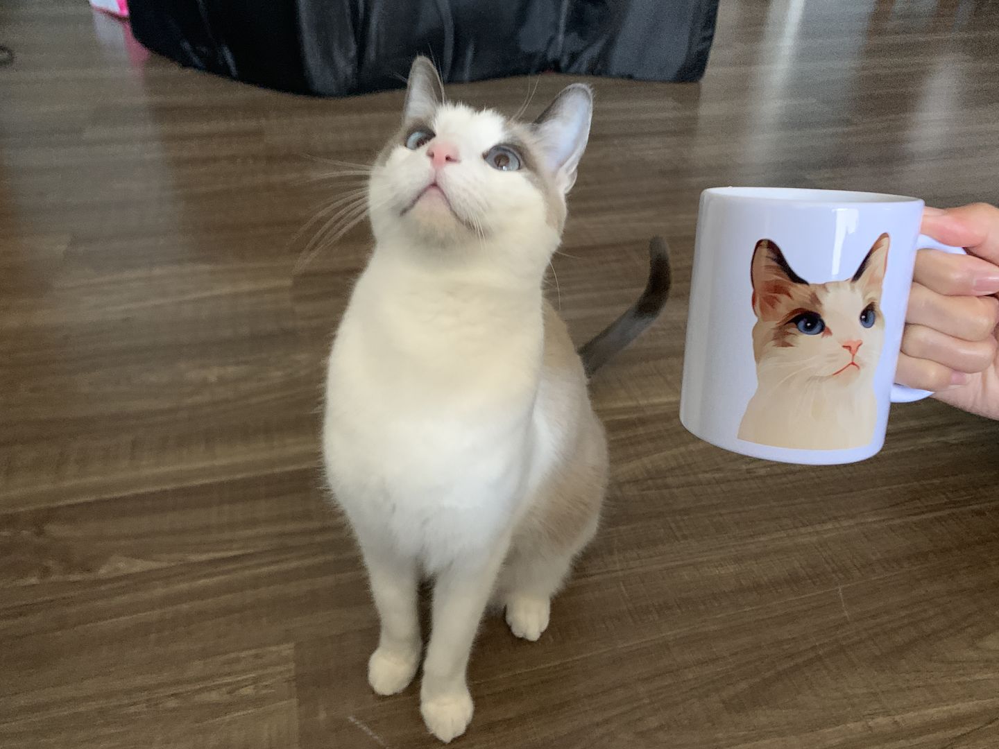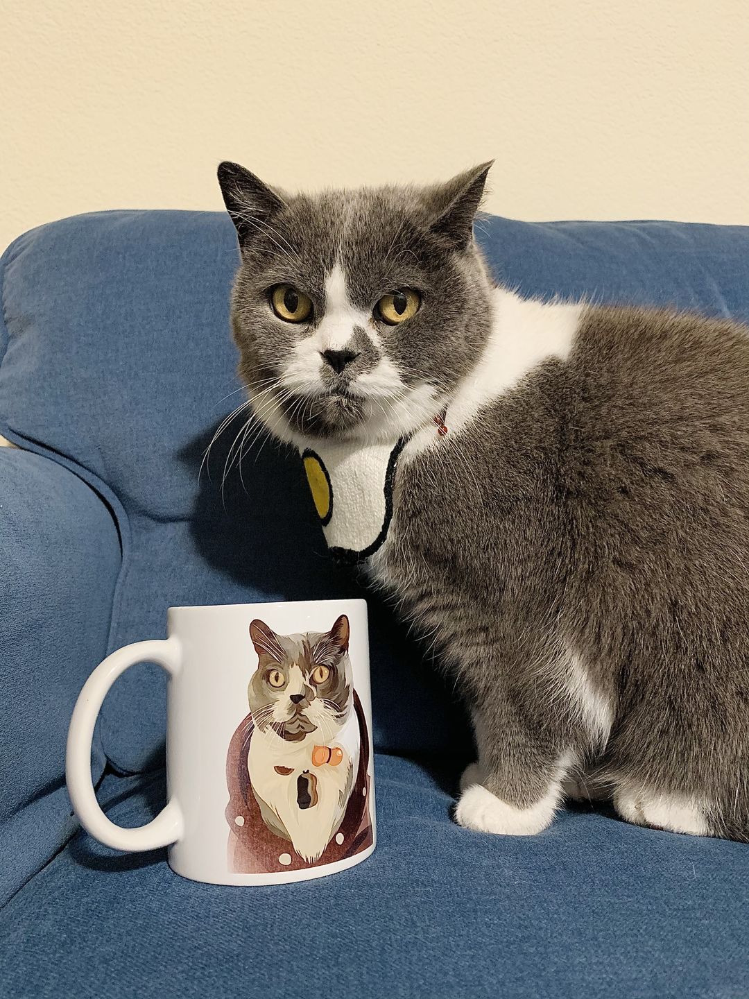 I love it!! I can't help but laugh when I see this mug! It looks just like my cat. The way the mug staring at me just like how my cat Booger staring at me. Now this has became my favorite mug. I'm thinking about order another to with my other cats' picture. By the way, the printing quality of the mug is so good. I have done personalized mug before and they were never this good. I was a little surprised how nice it feels. Love it!