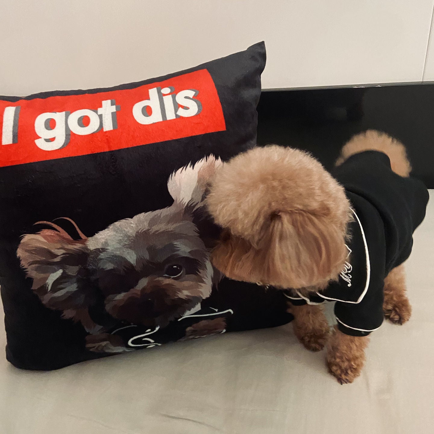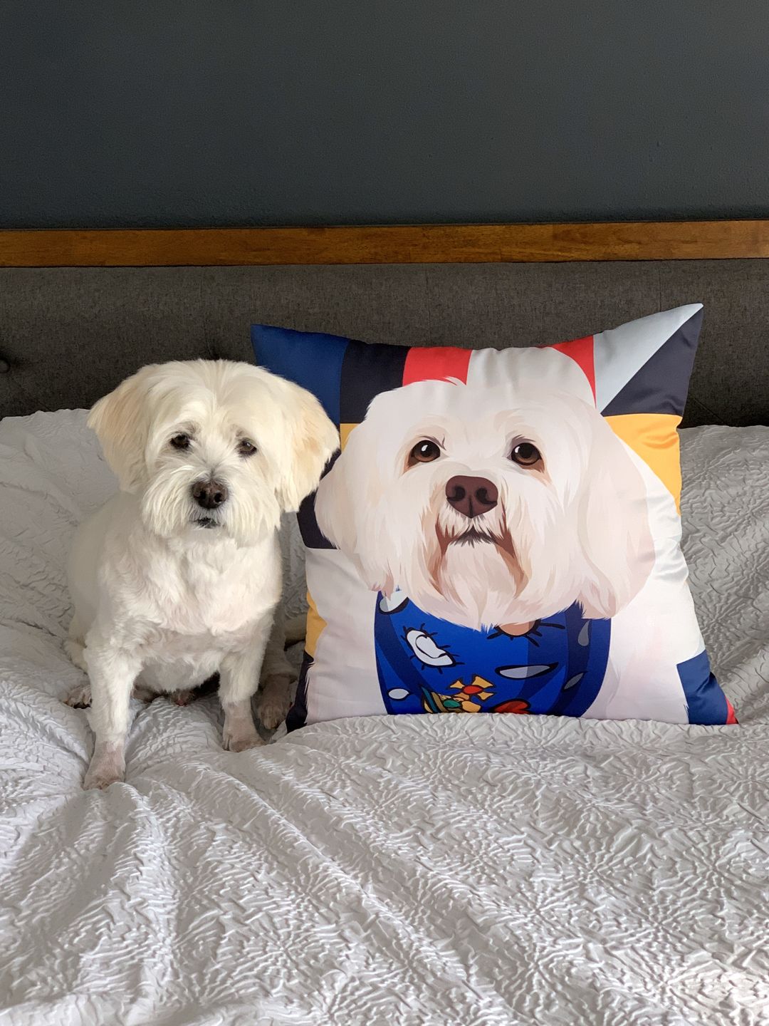 I lost my 12 years long best friend last year and the worst part was I couldn’t be there for him til the end. I’ve been trying different ways to capture the moment as if he’s still with me. Love this cute pillow which makes me feelhe is still next to me on the couch while I’m doing my work like in the old days. Lovely design and great quality ❤️