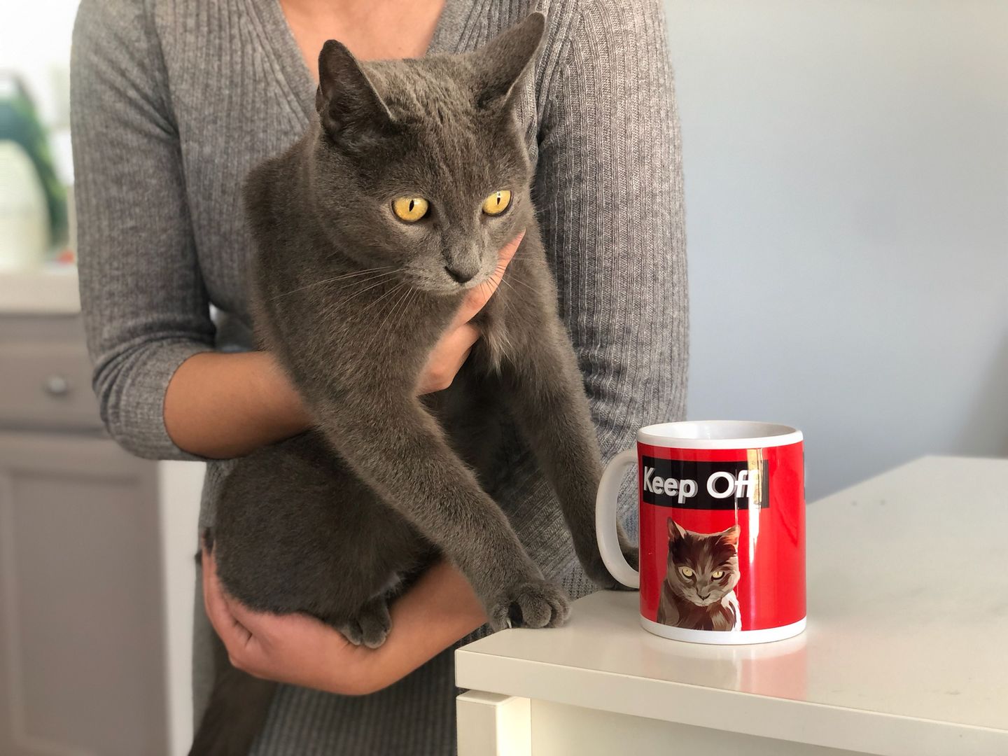 Look how swag this mug looks like! Exactly like my cat! And the "Keep Off" sign totally describes my cat's personality. All the backgrounds are really well designed, you can always find the perfect one for your pet.