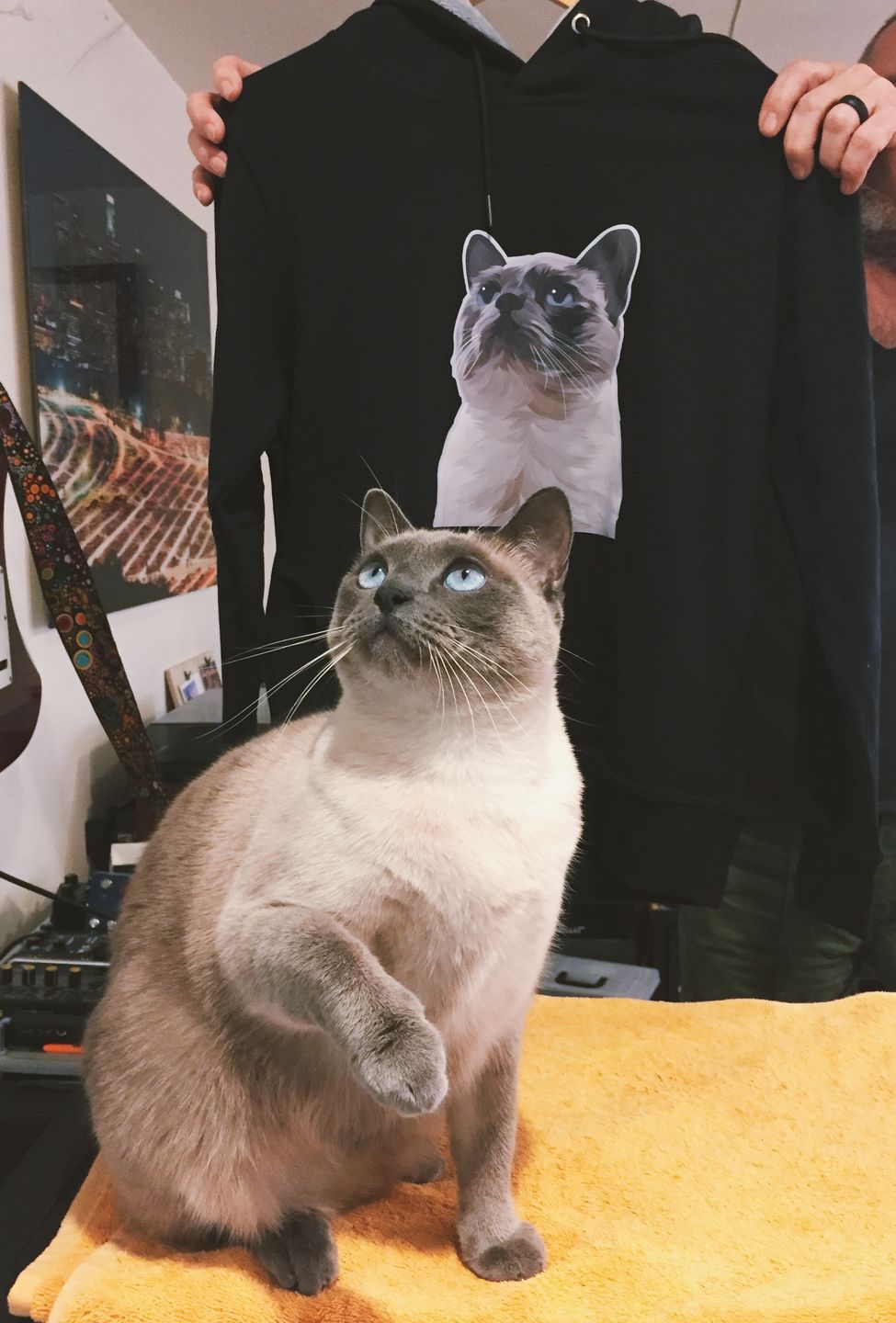 The hoody has such good quality! The print looks much better than I expected. I'm really surprised! The hat of the hoody has very very soft cozy layer in it. It's really warm and soft like my cat. I love how the animation looks just like my cat. Highly highly recommend!!